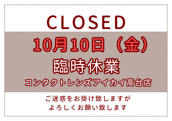 いつもコンタクトレンズアイカイ高台店をご利用いただきありがとうございます。