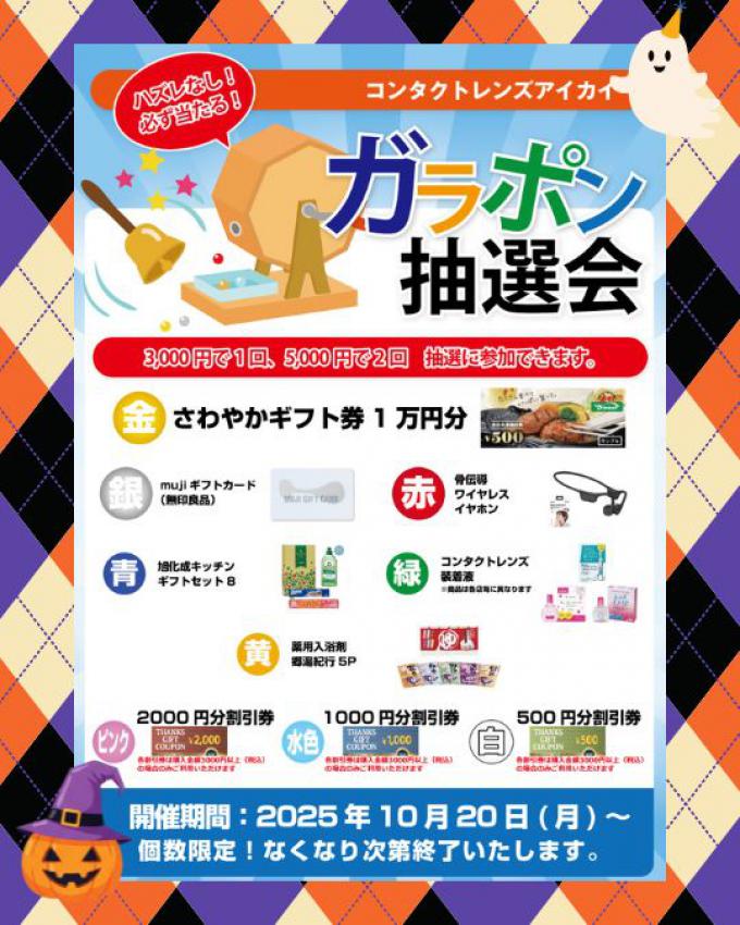 3000円以上の購入で1回、5000円以上の購入で2回回せます★