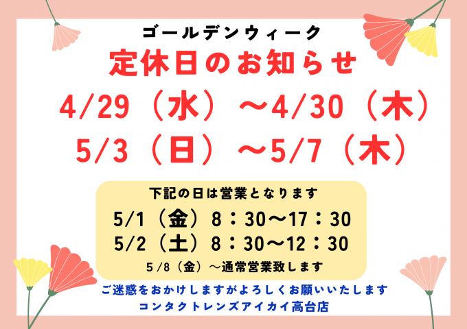 ゴールデンウイーク期間営業日のおしらせ